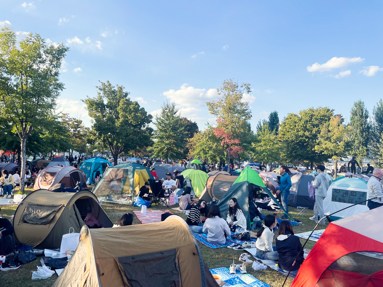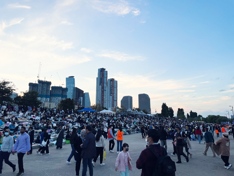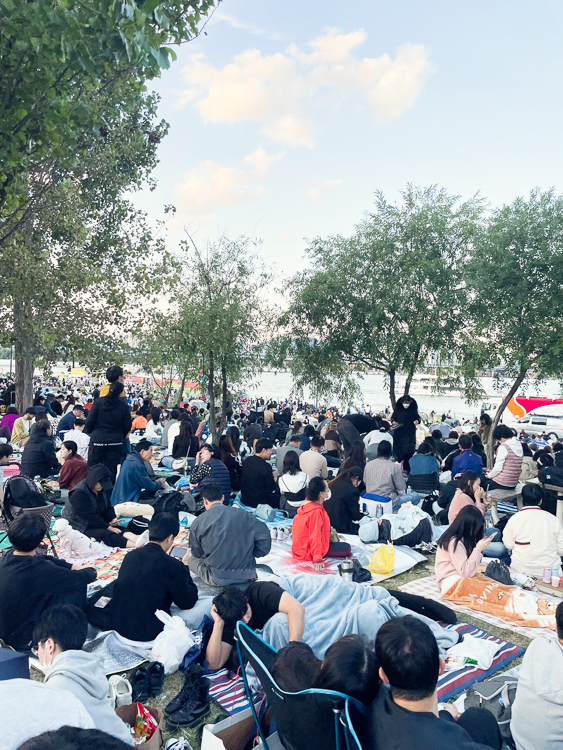 아직 불꽃놀이 행사가 시작하기엔 4시간이 넘게 남은 상태이지만 공원 곳곳은 이미 인파들로 북새통이다.